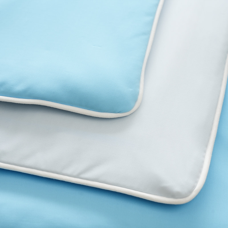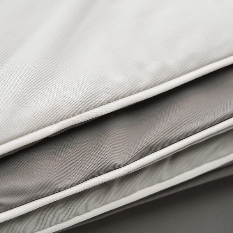 【Éifeacht fuaraithe dúbailte】 Tá an dá thaobh den chuilt fuaraithe déanta as fabraic snáithín fuaraithe dlúth. Tar éis an phróisis fíodóireachta ard-neart, tá cumas teasa níos airde ag an mblaincéad te agus fuar agus is féidir leis teas a dhíscaoileadh go héifeachtúil agus go tapa. Déantar ár gcuilt fuaraithe atá neamhdhíobhálach don chomhshaol as ábhair deimhnithe Oeko-Tex, bíodh leisce ort é a úsáid.