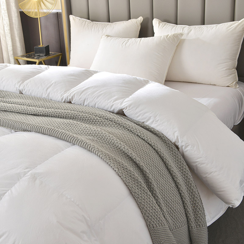 Líon síos agus cleite: Úsáideann an duvet seo meascán síos agus cleite (250gsm) atá foinsithe go heiticiúil agus inrianaithe. Beidh codladh maith agat leis an duvet te agus cluthar seo.