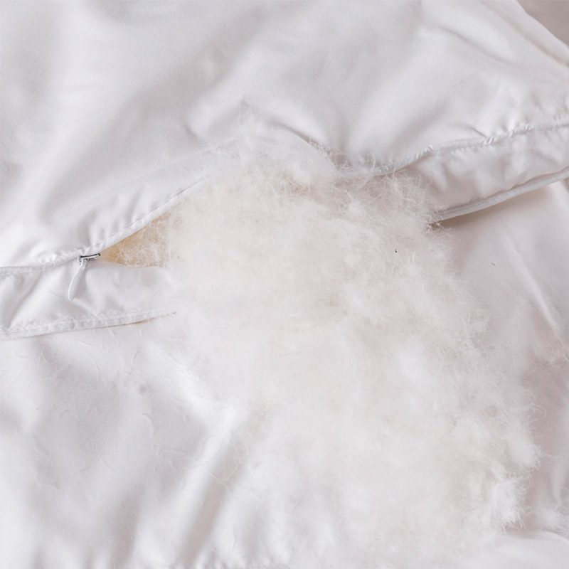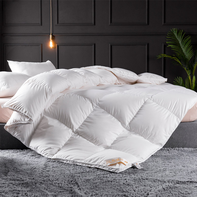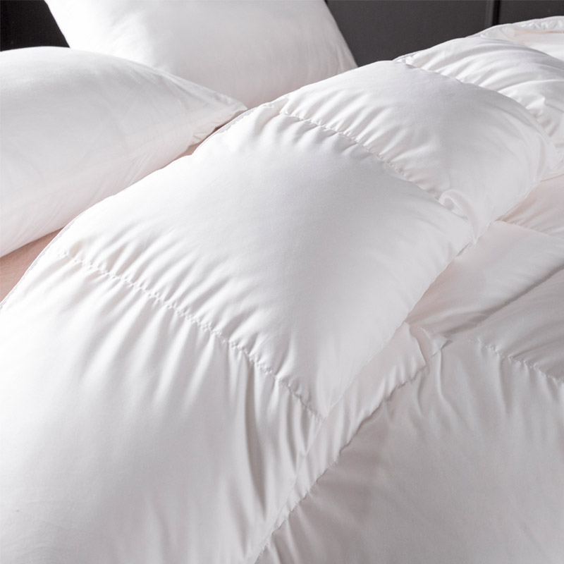 【Cuilte Cleite Só】 Tá an chuilt cleite gé bán clúmhach agus éadrom. Tá sé compordach go cas, téann sé bog, agus mothaíonn sé chomh maith agus atá sé. Tá an líonadh duvet seo déanta as cleite barr-ghrád agus de chumasc síos, atá te agus breathable, ag coinneáil compordach leat an oíche ar fad.